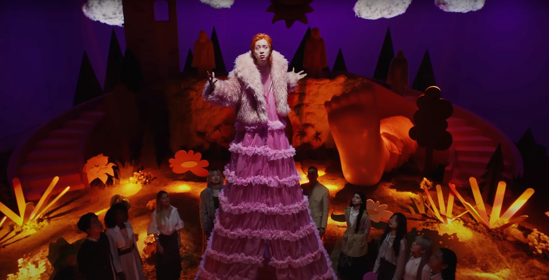 The carefree style adopted in ‘QUEEN‘ enhances the overall charm of the music video. Zior Park’s remarkable acting skills take center stage, injecting every scene with genuine emotion and passion. The video is not merely a visual feast but a performance art piece, enriched by the presence of performers, muppets, and even hairy monsters.